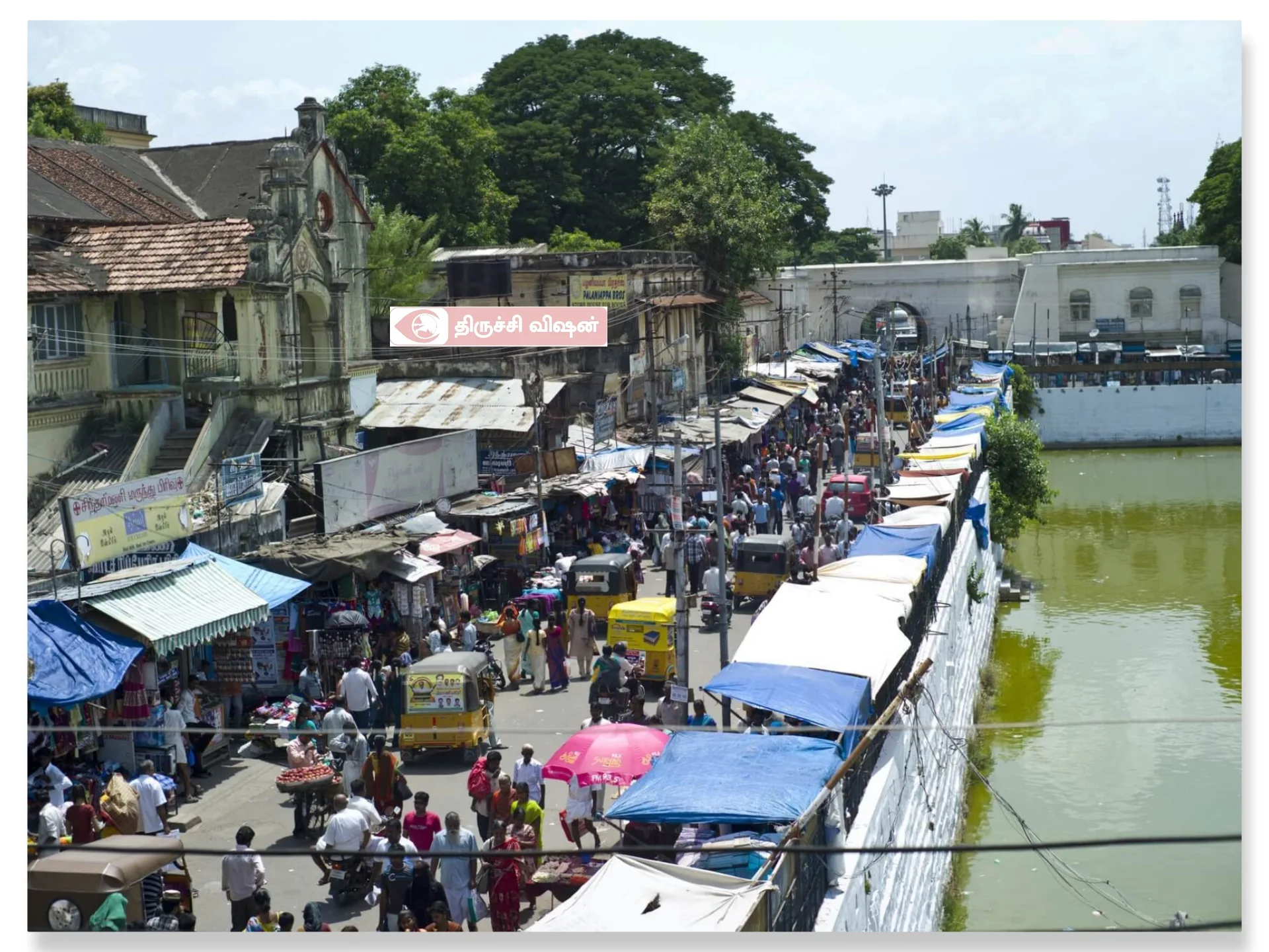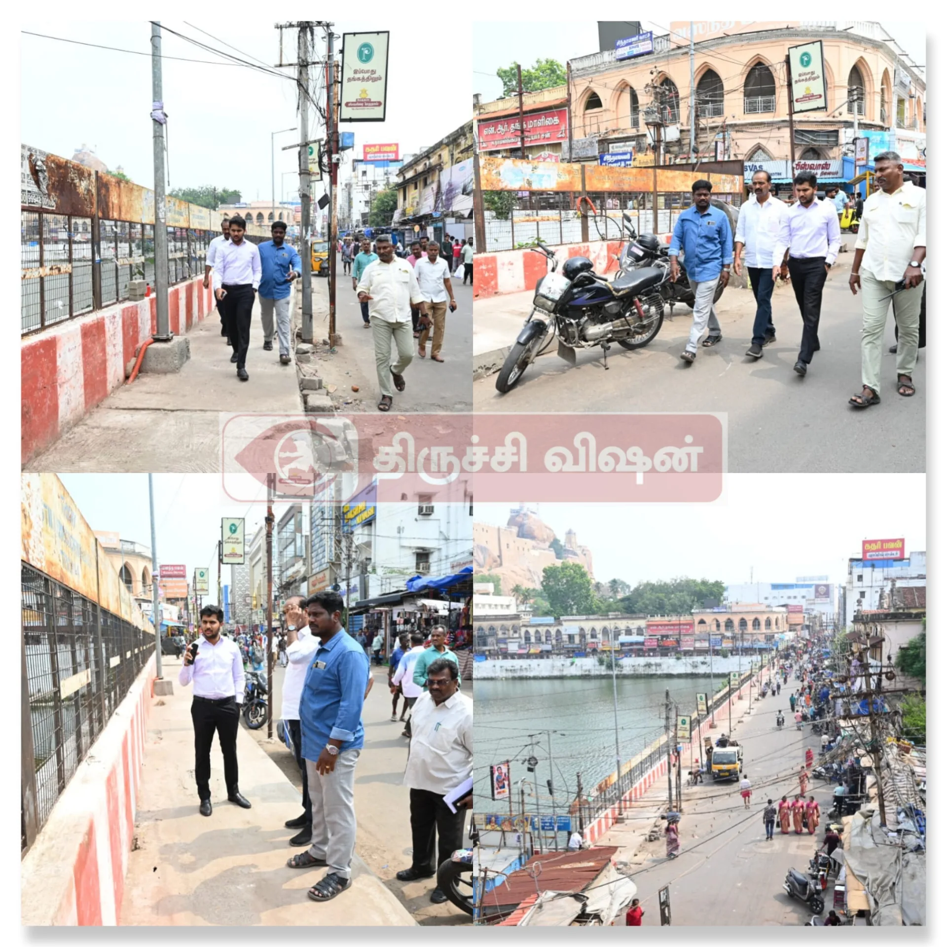 திருச்சி மலைக்கோட்டை தெப்பக்குளத்தை சுற்றியுள்ள பகுதிகளில் விற்பனை செய்யக்கூடாத இடமாக அறிவித்து அங்குள்ள கடைகளை அகற்றவும், தற்போது சாலை வர…