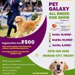 திருச்சி PET GALAXY நிறுவனம் சார்பாக All Breeds Dog Show (Season 3) நிகழ்ச்சியை ஜனவரி 25, 2026…