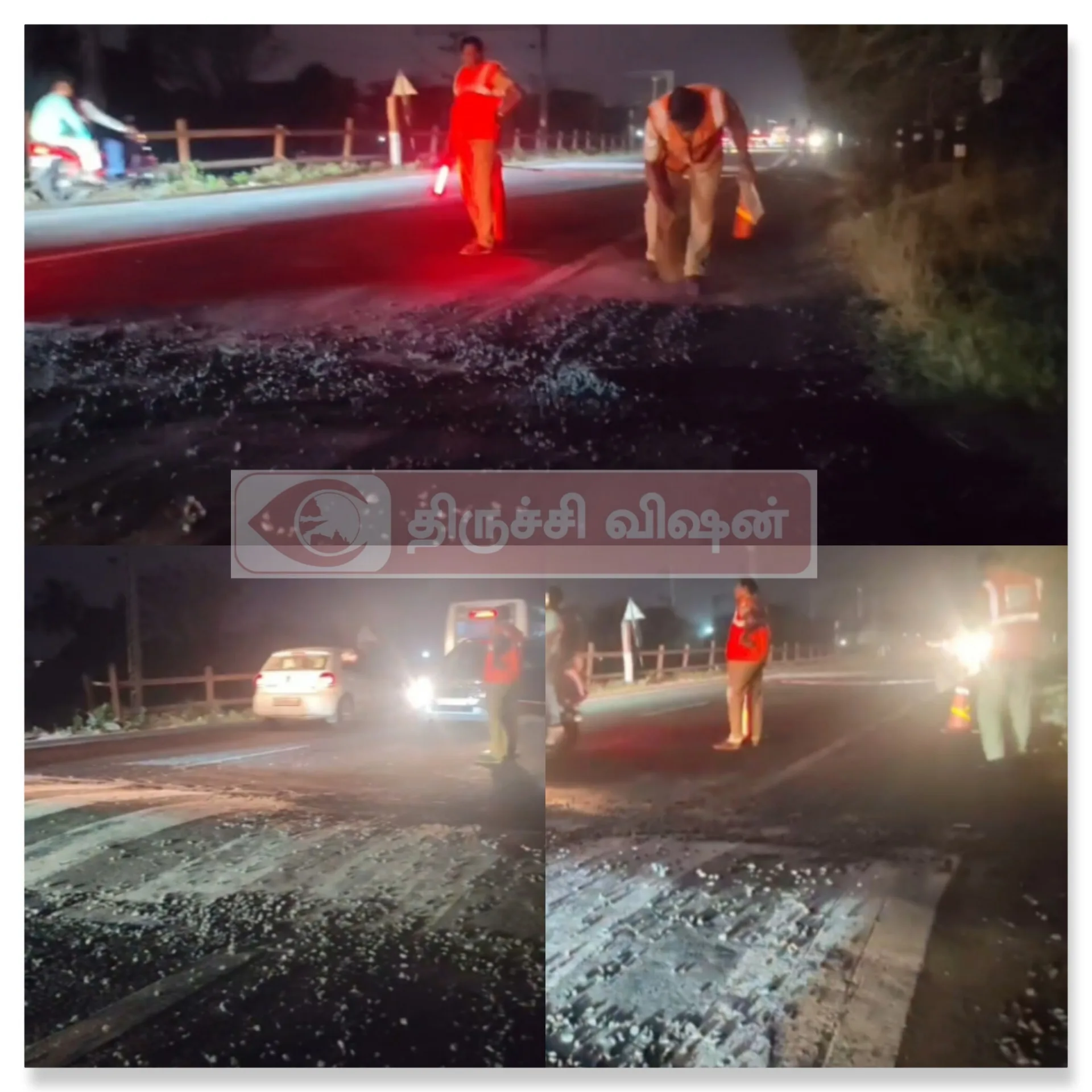 இன்று இரவு திருச்சி கரூர் நெடுஞ்சாலையில் விபத்து பகுதியான முத்தரசநல்லூர் வேக தடை பகுதியில் சாலையில் கன ரக வாகனங்களில்…