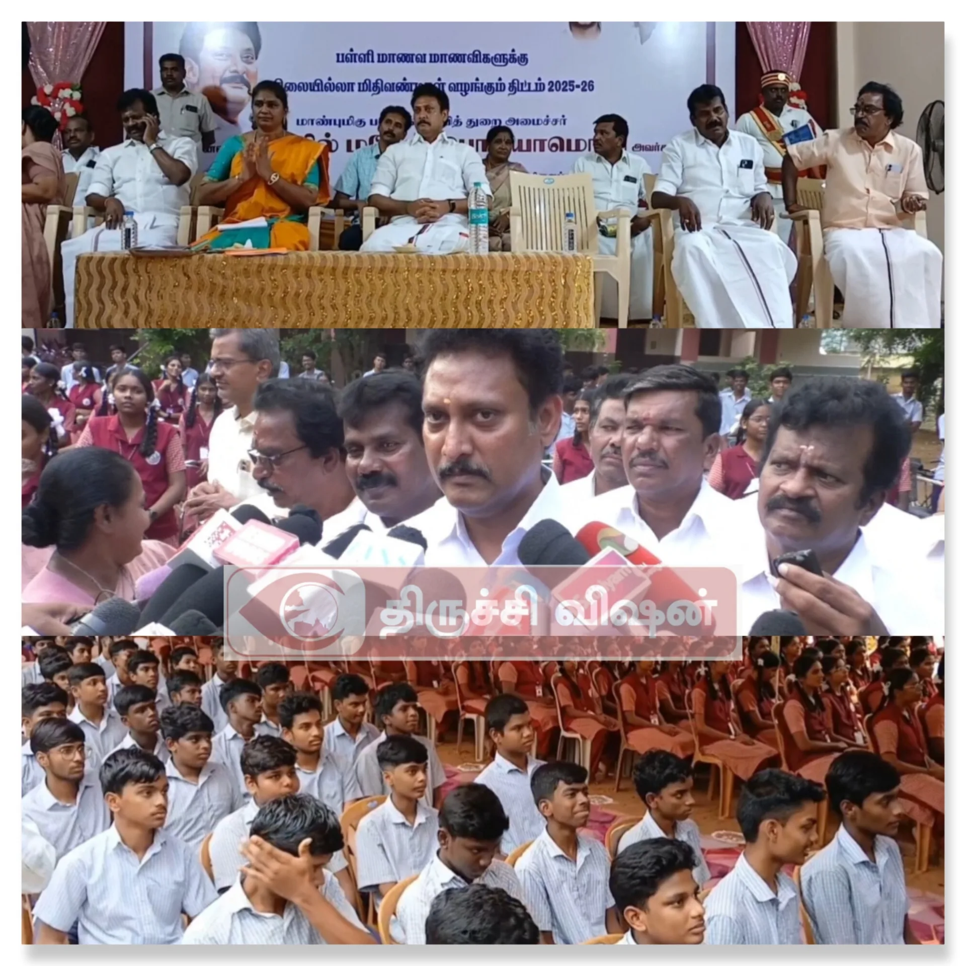 திருச்சி பொன்மலைப்பட்டி பகுதியில் உள்ள புனித வளனார் பெண்கள் மேல்நிலைப் பள்ளியில் விலையில்லா மிதிவண்டிகள் வழங்கும் விழா இன்று நடைபெற்றது…