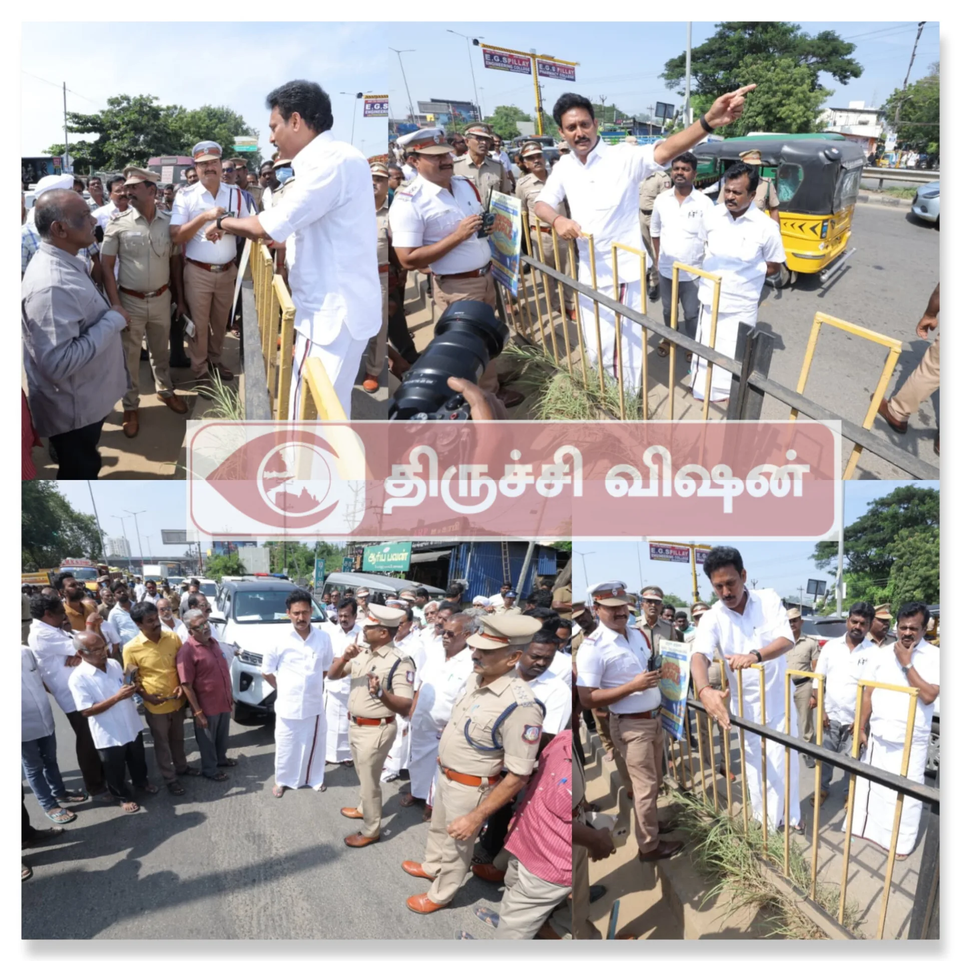 அரியமங்கலம் நான்கு சாலை சந்திப்பில் போக்குவரத்து நெரிசல்: அமைச்சர் அன்பில் மகேஸ் நேரில் ஆய்வு