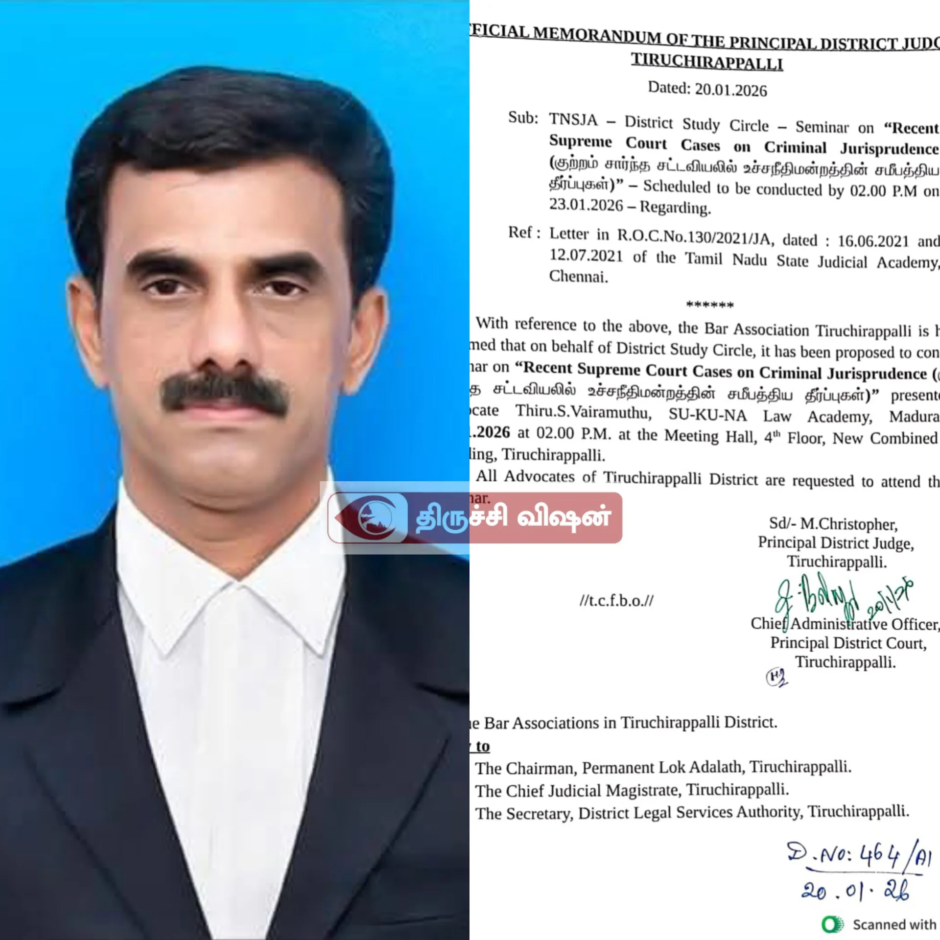 திருச்சிராப்பள்ளி மாவட்ட நீதிமன்றத்தில், உதவி அரசு வழக்கறிஞர் (Assistant Public Prosecutor – APP) தேர்வினை முன்னிட்டு, வழக்கறிஞர்களுக்கான சிறப்பு…