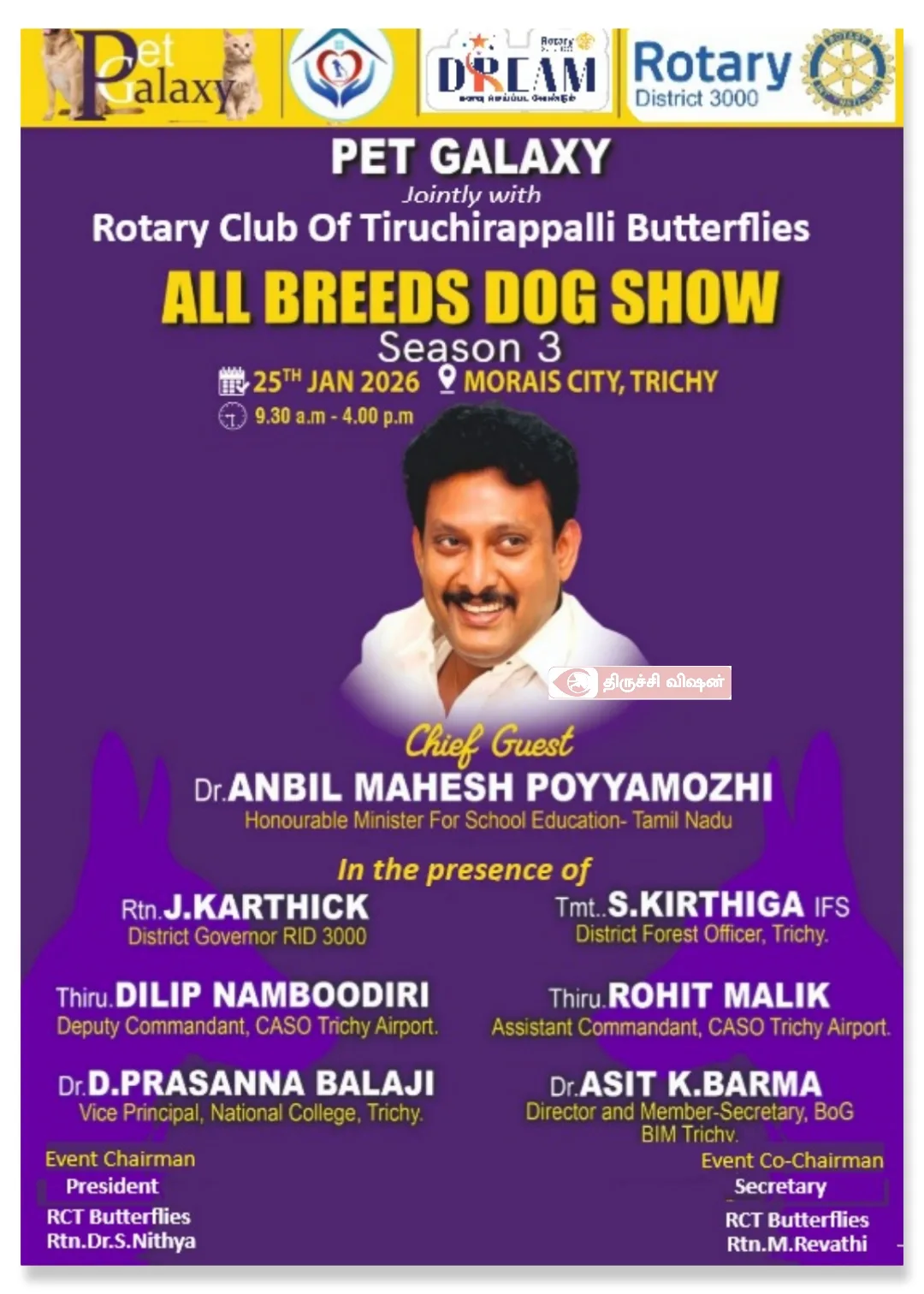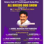 பெட் கலாக்ஸி மற்றும் ரோட்டரி கிளப் ஆஃப் திருச்சிராப்பள்ளி பட்டர்ஃப்ளைஸ் இணைந்து நடத்தும் அனைத்து இன நாய்கள் கண்காட்சி (All…