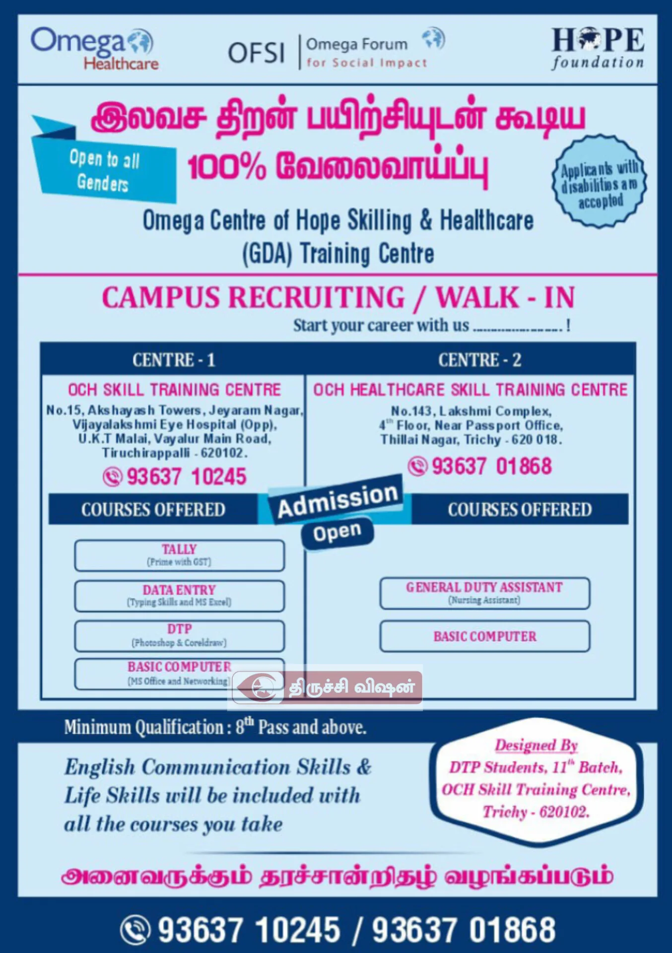 இலவச திறன் பயிற்சியுடன் கூடிய 100% வேலை வாய்ப்பை ஒமேகா சென்டர் ஆப்ஹோப் பயிற்சி நிறுவனமானது கடந்த 2022 ஏப்ரல்…