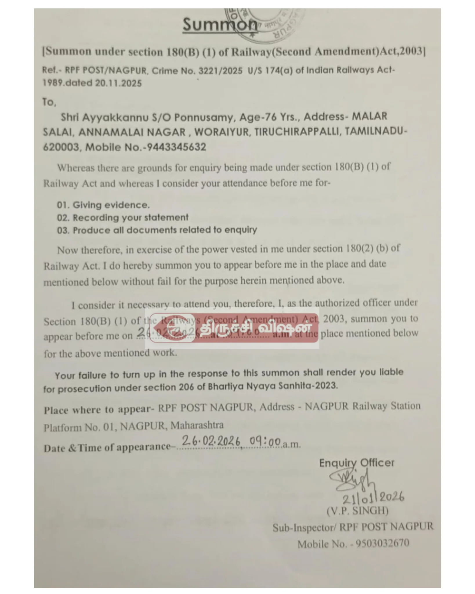 நாளை 25.02.2026 காலை.5.45 நாக்பூர்.கோர்டில் ஆஜர் ஆக காலை திருச்சி…