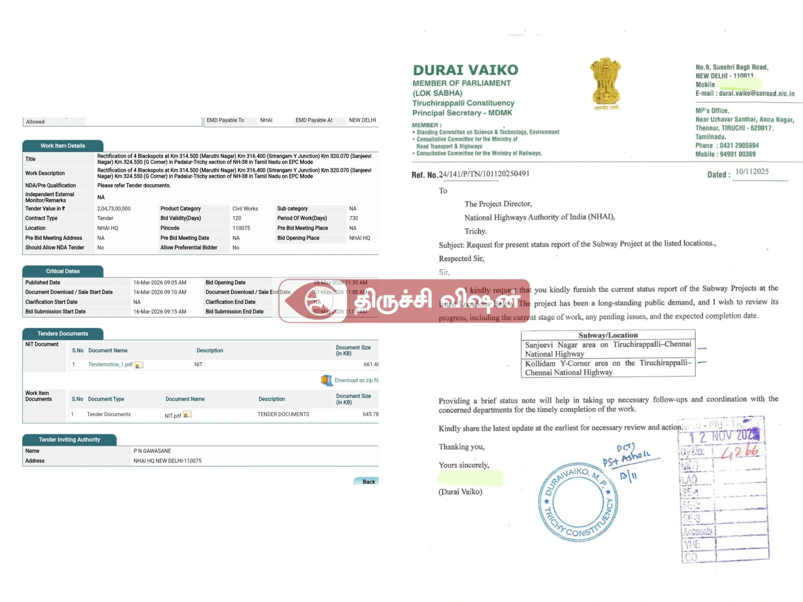 திருச்சி – சென்னை நெடுஞ்சாலையில் 4 இடங்களில் சுரங்கப்பாதை: ₹205 கோடியில் டெண்டர் வெளியீடு!