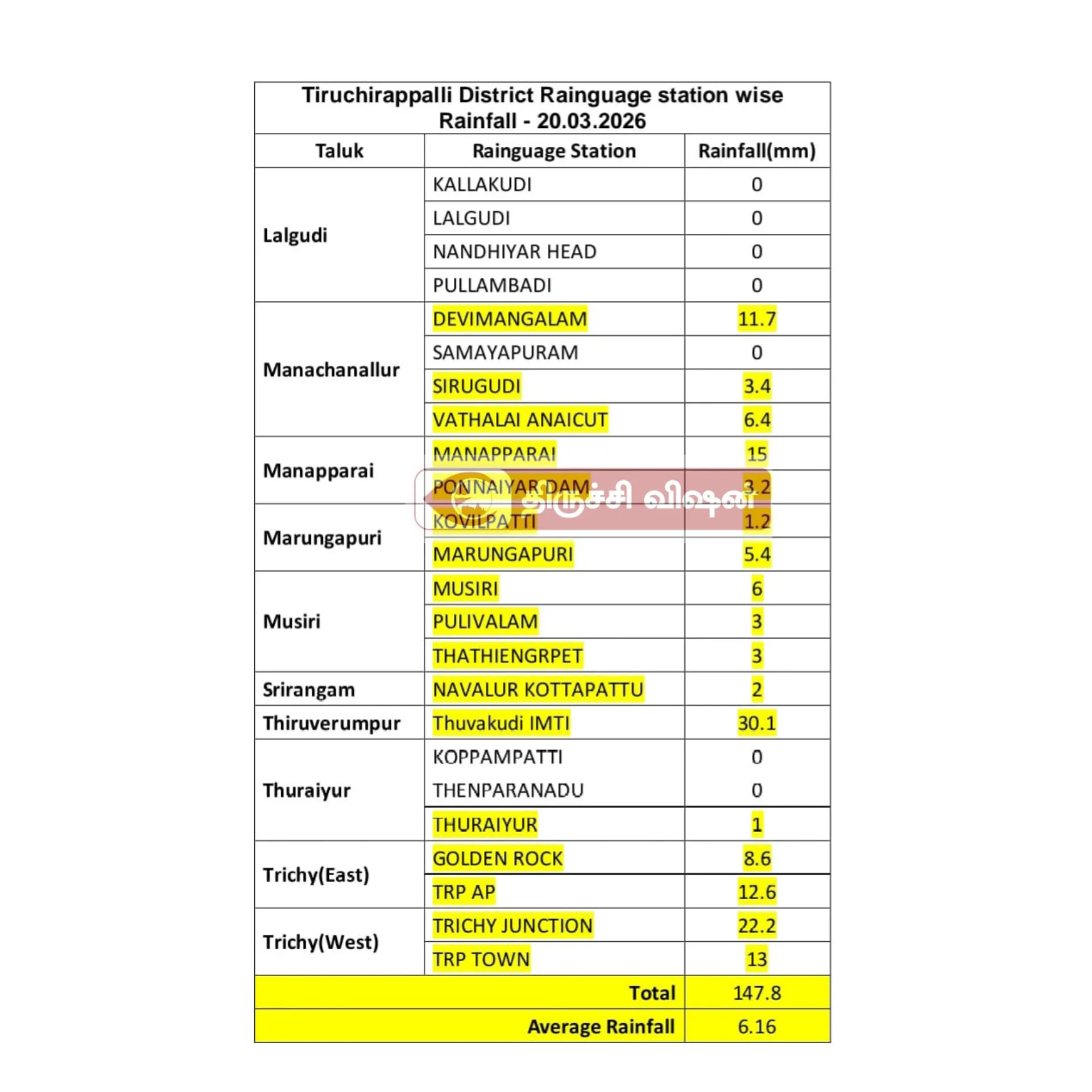 திருச்சிராப்பள்ளி மாவட்டத்தில் நேற்று (09.08.2025) மொத்தம் 334.5 மில்லி மீட்டர்…