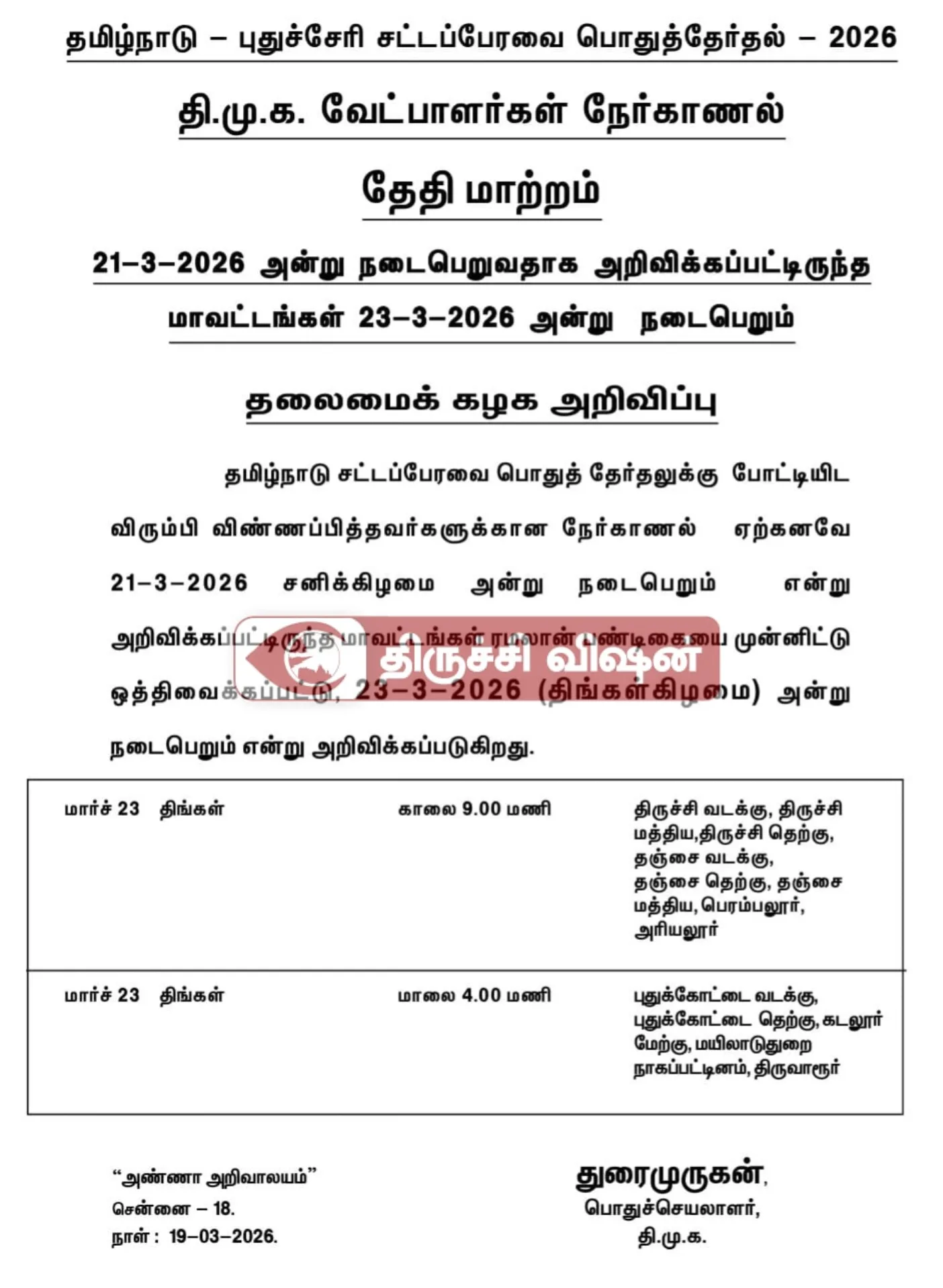 தமிழ்நாடு சட்டமன்றத் தேர்தல் 2026-ஐ முன்னிட்டு திருச்சிராப்பள்ளி மாவட்டத்திற்குட்பட்ட 09 சட்டமன்றத் தொகுதிகளுக்கும் இந்திய தேர்தல் ஆணையத்தினால் நியமிக்கப்பட்ட பொதுப்பார்வையாளர்கள்,…