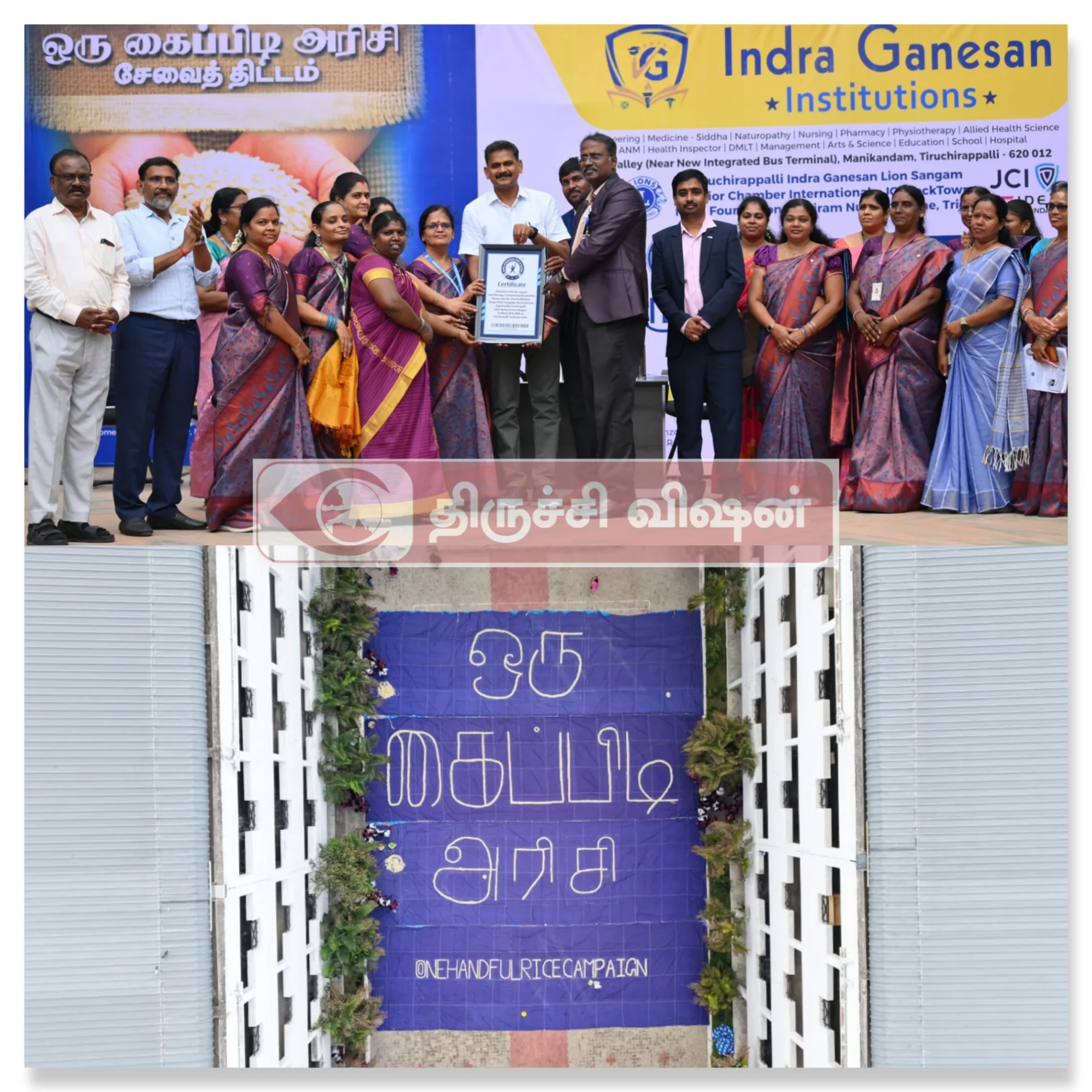 18.03.2026 அன்று, திருச்சிராப்பள்ளியில் அமைந்துள்ள இந்திரா கணேசன் கல்வி நிறுவன வளாகத்தில் “ஒரு கைப்பிடி அரிசி” உலக சாதனை முயற்சி…