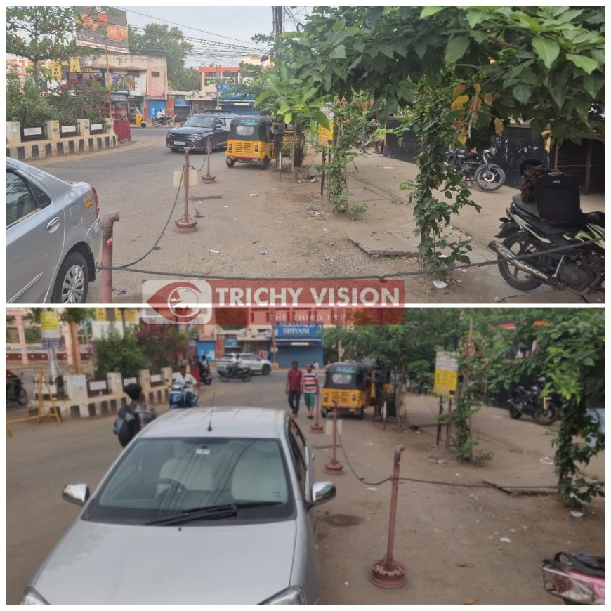 திருச்சி ஜங்சன் சாலையில் தனியார் பள்ளி எதிரே உள்ள வணிக நிறுவனங்கள், பள்ளிக்கூடங்கள் உள்ள சாலையின் ஓரத்தை ஆக்கிரமிப்பு செய்து ஆட்டோ ஓட்டுநர்கள் இடம் பிடித்துள்ளனர். ஏற்கனவே இந்த பகுதியில் போக்குவரத்து நெரிசல் இருக்கும் நிலையில், தற்போது ஆட்டோ ஓட்டுநர்கள் அவர்களுக்கு தேவையான இடத்தை தேர்வு செய்து தடுப்புகள் வைத்துள்ளனர்.