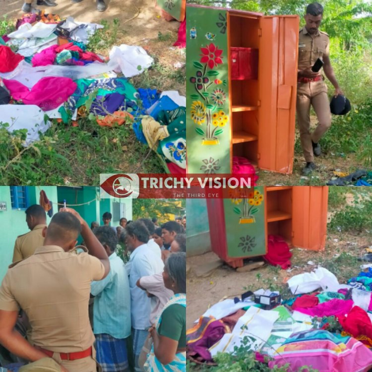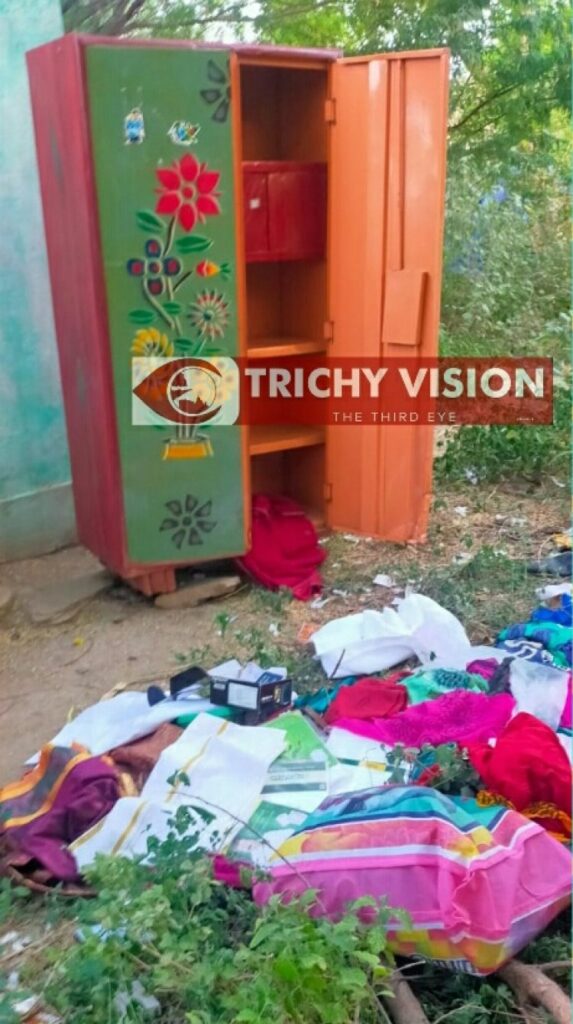 இந்நிலையில் நேற்றிரவு அவரது வீட்டிற்கு வந்த மர்ம நபர்கள்  மருமகள் இருந்த அறையின் வெளி தாழ்ப்பாளை பூட்டி விட்டு மற்றொரு அறையின் பூட்டை உடைத்து வீட்டிலிருந்த பீரோவை அலேக்காக தூக்கிக் கொண்டு வெளியே சென்ற மர்மநபர்கள்  பீரோவை உடைத்து பீரோவிலிருந்த  10  1/2 பவுன் நகை மற்றும் 40 ஆயிரம் பணத்தை கொள்ளையடித்து விட்டுச் சென்றனர்.