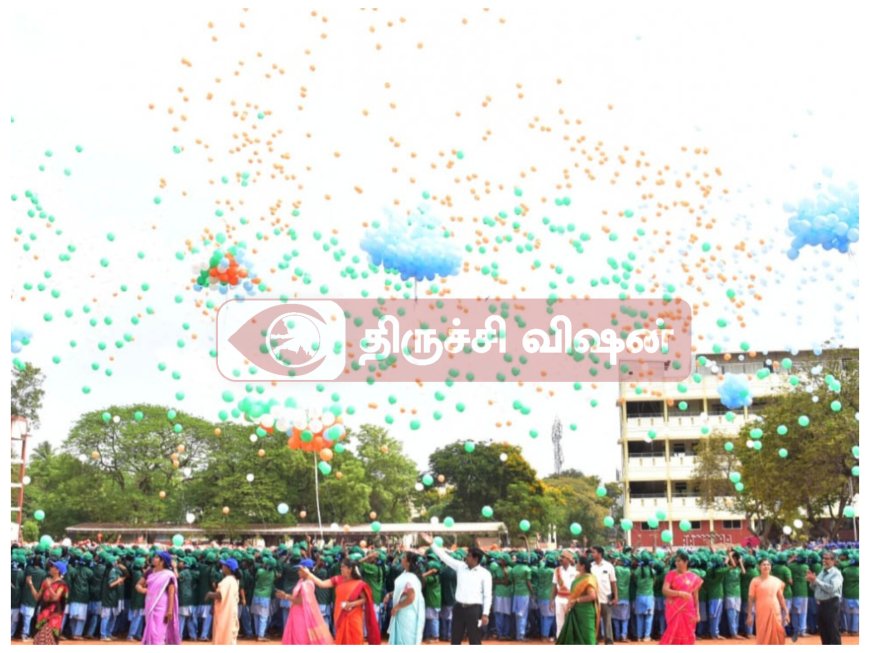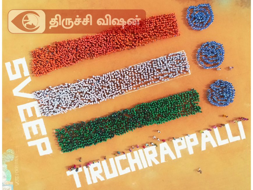 திருச்சிராப்பள்ளி மாவட்ட நிர்வாகம் மற்றும் பள்ளிக்கல்வித்துறை இணைந்து வருகிற நாடாளுமன்ற தேர்தலில் 100 சதவீத வாக்களிப்பை வலியுறுத்தும் வகையில் திருச்சி ஹோலி கிராஸ் பெண்கள் மேல்நிலைப் பள்ளியில் 5000 மாணவிகள் மூவர்ண ஆடைகள் அணிந்து மைதானத்தில் ஒருங்கே தேர்தல் ஆணையத்தின் லோகோ வடிவில் கைகளில் ஏந்திநின்ற ஹீலியம் பலூன்களை வானில் பறக்கவிட்டு விழிப்புணர்வு ஏற்படுத்தினர்.
