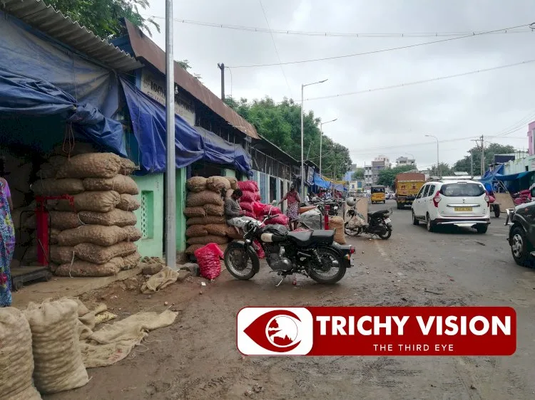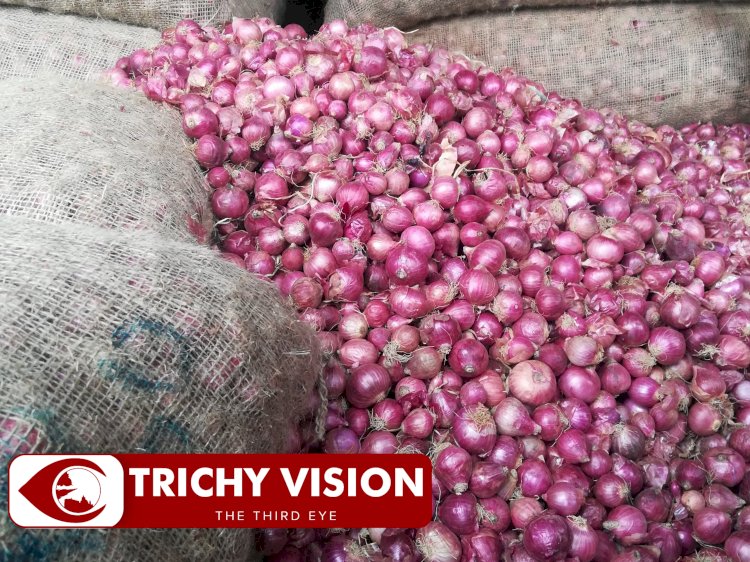 திருச்சி பழைய பால்பண்ணை அருகே உள்ள வெங்காயம் மண்டியில் நாளொன்றுக்கு பெரிய வெங்காயம் ( மகாராஷ்டிரா கர்நாடகா )200 டன்னும் சின்ன வெங்காயம் (பெரம்பலூர், துறையூர், கோவை பகுதியில்) 100 டன் வருகிறது.