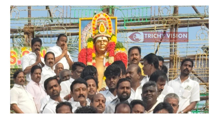 இந்நிலையில் திருச்சி மத்திய பேருந்து நிலையம் அருகே உள்ள முத்துராமலிங்க தேவரின் திருஉருவச் சிலைக்கு கழக முதன்மைச் செயலாளரும் நகராட்சி நிருவாகத்துறை அமைச்சருமான கே.என்.நேரு தலைமையில் திமுகவினர் மாலை அணிவித்து மரியாதை செலுத்தினார்.