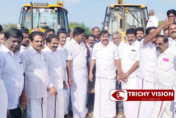 திருச்சி மாவட்டம் சிறுகனூரில் திமுக சார்பில் 11வது மாநில மாநாடு பிப்ரவரி மாதம் நடைபெறுவதையொட்டி இன்று அதற்கான பணிகள் துவங்கப்பட்டது.