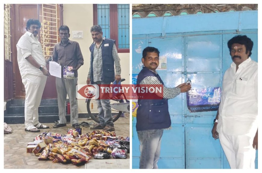 திருச்சிராப்பள்ளி, உறையூர் சாலை ரோடு பகுதியில் உள்ள குரு பீடா ஸ்டால் என்ற கடை தொடர்ந்து தமிழக அரசால் தடைசெய்யப்பட்ட புகையிலை பொருட்களை விற்பனை செய்து தொடர் அபராதங்கள் செலுத்தி ஏற்கனவே கடந்த இரண்டு மாதங்களுக்கு முன்று அந்த கடை சீல் செய்யப்பட்டது.