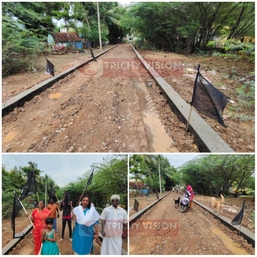 திருச்சி மாவட்டம் திருவெறும்பூர் அருகே உள்ள கும்பக்குடி ஊராட்சிக்கு உட்பட்டது வேலாயுதம்குடி. இந்த பகுதியில் சுமார் 50 முதல் 60 குடும்பங்கள் வசித்து வருகிறது. இந்த நிலையில் கும்ப குடியிலிருந்து மாத்தூருக்கு செல்லும் காலையிலிருந்து வேலாயுதங்குடிக்கு பிரிந்து செல்லும் சாலை சுமார் 25 ஆண்டுகளுக்கு முன்பு போடப்பட்டதாகும்.
