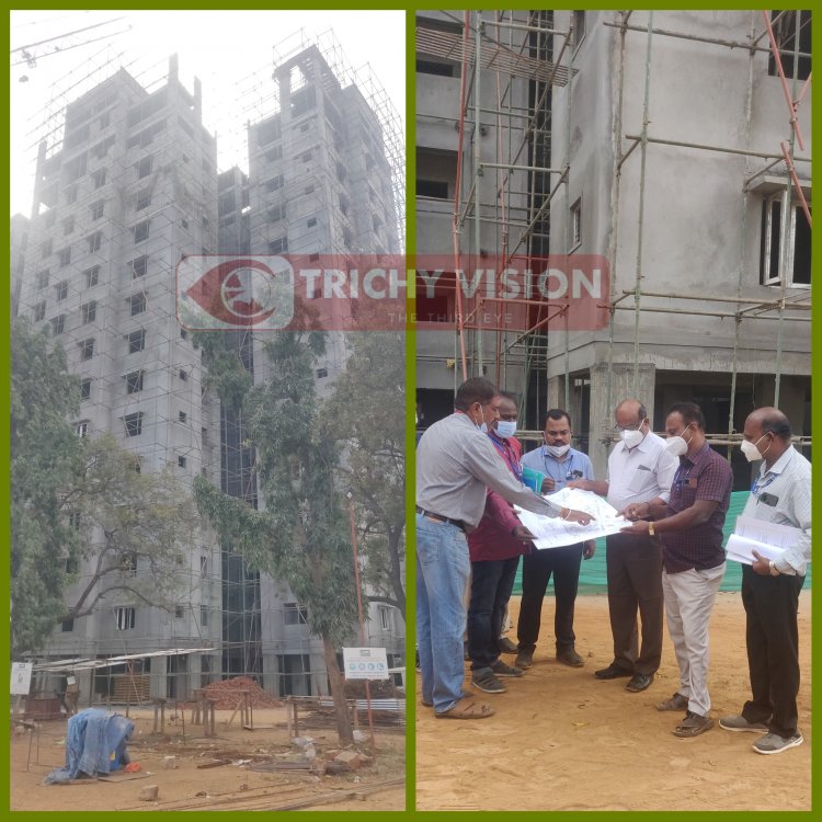 திருச்சிராப்பள்ளி மன்னார்புரம் சர்க்யூட் ஹவுஸ் காலனி வளாகப் பகுதியில், தமிழ்நாடு வீட்டுவசதி வாரியத்தின் சார்பில் 103.50 கோடி மதிப்பீட்டில் கட்டப்பட்டுவரும் அடுக்குமாடி குடியிருப்புக் கட்டிடங்களின் கட்டுமானப் பணிகளை, மாவட்ட ஆட்சித் தலைவர் சிவராசு இன்று பார்வையிட்டு ஆய்வு செய்தார்.