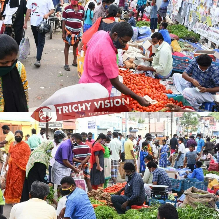 இந்நிலையில் கொரோனா தொற்று காரணமாக காந்தி மார்க்கெட் முழுவதும் மூடப்பட்டு தற்காலிக மார்கெட்டாக மேலப்புலிவார்டு, மரக்கடை பகுதியில் செயல்பட்டு வருகிறது.