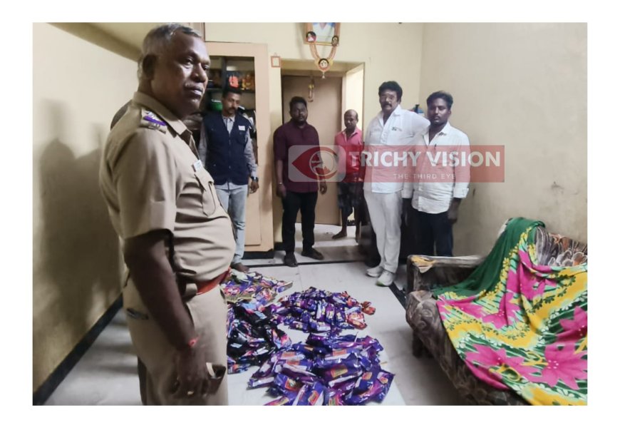 பழைய கரூர் ரோடு நடுத்தெருவில் பொதுமக்களிடம் இருந்து வந்த புகாரை அடுத்து மேற்கண்ட இடத்தில் குடியிருந்து வரும் சகோதர்ர்கள் மனோகர் மணி மற்றும் ராஜா ஆகிய மூன்று சகோதர்ரகளின் இரண்டு கடைகள் மற்றும் வீடு ஆகியவைகளை ஆய்வு செய்த போது அங்கு தமிழக அரசால் தடை செய்யப்பட்ட புகையிலை புகையிலை பொருட்கள் சுமார் 24 கிலோ இருப்பது கண்டறிந்து பறிமுதல் செய்யபட்டு வழக்கு போடுவதற்காக மூன்று சட்டபூர்வ உணவு மாதிரிகள் எடுக்கப்பட்டன.