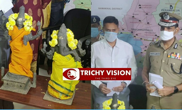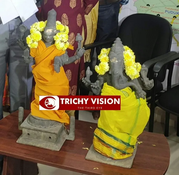 சிலை கடத்தல் தடுப்பு பிரிவு தனிப்படை போலீசார் ஒரு கோடி ரூபாய் மதிப்புள்ள அந்த சிலைகளை, கும்பகோணம் கூடுதல் தலைமை குற்றவியல் நீதிமன்றத்தில் ஒப்படைத்துள்ளனர். இது தவிர, 110 கோடி ரூபாய்க்கு விற்க முயன்ற தொன்மையான எட்டுகை விஷ்ணு சிலை சிவன் விநாயகர் நடராஜர் சிலைகளையும் தனிப்படை போலீசார் 2 பேரை கைது செய்துள்ளனர்.