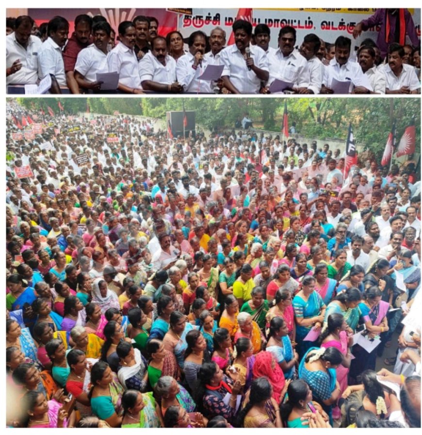 கழக முதன்மைச் செயலாளரும் நகராட்சி நிருவாகத்துறை அமைச்சருமான கே.என்.நேரு வழிகாட்டுதலின்படி மத்திய மாவட்ட செயலாளர் வைரமணி மற்றும் வடக்கு மாவட்ட செயலாளர் காடுவெட்டி தியாகராஜன் எம்எல்ஏ ஆகியோர் தலைமையில் மாபெரும் கண்டன ஆர்ப்பாட்டம் நடைபெற்றது.