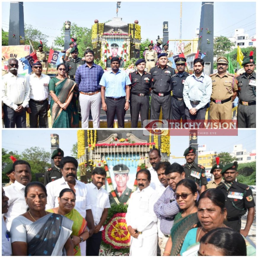 திருச்சிராப்பள்ளி வெஸ்ட்ரி பள்ளி அருகில் உள்ள மேஜர் சரவணன் சதுக்கத்தில் 25வது ஆண்டு நினைவு தினத்தை முன்னிட்டு மாவட்ட ஆட்சியர் பிரதீப் குமார், மாநகராட்சி ஆணையர் சரவணன் இருவரும் மலர் வளையம் வைத்து மரியாதை செலுத்தினர்.