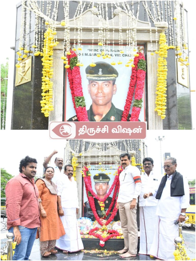 1999ம் ஆண்டு இந்தியாவிற்கும், பாகிஸ்தானிற்கும் இடையே நடைபெற்ற கார்கில் போரின்போது யுத்தகளத்தில் எதிரிகளின் 2 முகாம்களை ஏவுகணையால் தாக்கி வீழ்த்தி, எதிரிகளை கொன்றொழித்து வீரமரணம் அடைந்த திருச்சியைச் சேர்ந்த மேஜர் சரவணனின் 26வது ஆண்டு நினைவுதினம் இன்று அனுசரிக்கப்பட்டது.அவரது நினைவுதினத்தையொட்டியும், கார்கில் போரில் உயிர்நீத்த இதர வீரர்கள் மற்றும்
