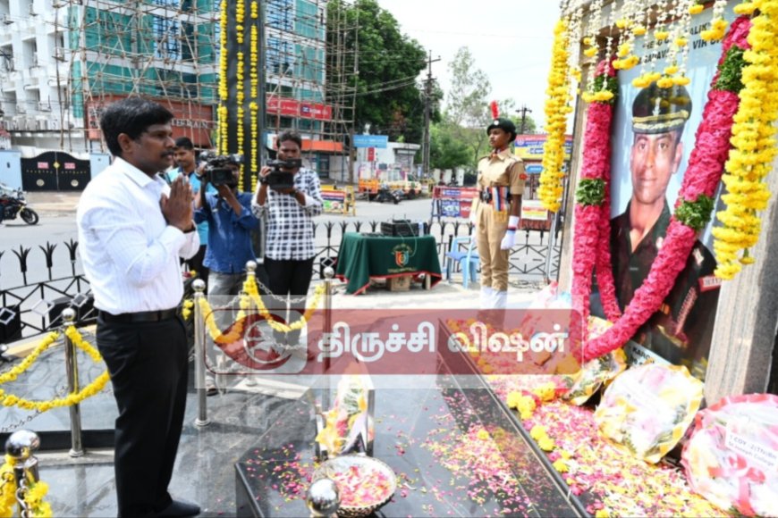 தியாகிகளை நினைவுகூறும் வகையில் திருச்சி மாவட்ட ஆட்சியர் அலுவலகம் சாலையில் உள்ள மேஜர் சரவணன் நினைவிடத்தில் மலர்வளையம் வைத்து மரியாதை செலுத்தப்பட்டது.மாவட்ட ஆட்சியர் பிரதீப்குமார், மாநகராட்சிமேயர் அன்பழகன், ஸ்டேஷன் கமாண்டர் கர்னல் சுதீப் ஷட்டர்ஜி, குரூப் கமாண்டர் கர்னல் விஜயகுமார்,