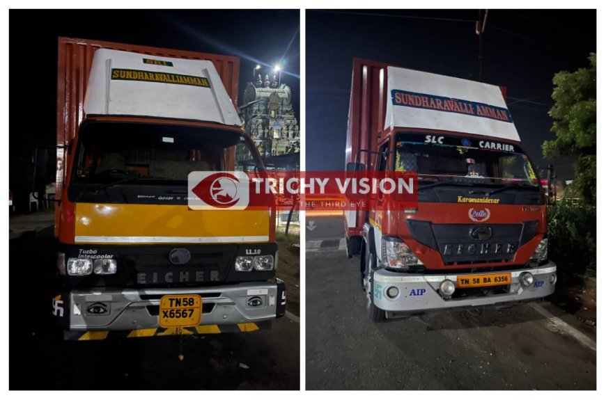 தீபாவளி பண்டிகைக்கு சிவகாசியில் தயாராகும் பட்டாசுகளை மொத்தமாக வாங்கி வந்து திருச்சி பகுதியில் கடை அமைத்து சில்லரை விற்பனை செய்வதற்காக பெரிய அளவில் பட்டாசுகளை வியாபாரிகள் கொள்முதல் செய்து அதனை சரக்கு வாகனங்களில் அரசின் உரிய அனுமதி பெற்று ஏற்றி வருவது வருவது வழக்கம்.