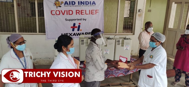 அந்தவகையில் திருச்சி AID INDIA அமைப்பினர் சார்பாக லால்குடி அரசு மருத்துவமனைக்கு 3 லட்சம் மதிப்பிலான 4 ஆக்சிஜன் சிலிண்டர்கள் மற்றும் மருத்துவ உபகரணங்கள் வழங்கப்பட்டது. இந்த அமைப்பினர் சார்பாக மருத்துவமனையின் மருத்துவர்களிடம் இந்த மருத்துவ உபகரணங்களை ஒப்படைத்துள்ளனர். இது மட்டுமல்லாமல் அந்தநல்லூர் பகுதியில் சுமார் பத்திற்கும் மேற்பட்ட குடும்பங்களுக்கு தொடர்ந்து நிவாரணப் பொருட்களையும் வழங்கி வருகின்றனர்.