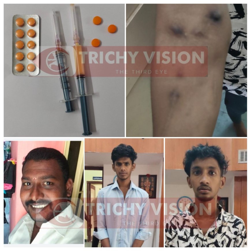 திருச்சி உறையூர் காவல் நிலையத்திற்குட்பட்ட பகுதியில் உள்ள தனியார் பள்ளி அருகே மாணவர்களுக்கு போதை மாத்திரைகள் விற்பதாக போலீஸாருக்கு தகவல் கிடைத்தது. அதன்பேரில் உறையூர் காவல் ஆய்வாளா் ராமராஜன் தலைமையிலான போலீஸாா் குறிப்பிட்ட இடங்களில் சோதனை மேற்கொண்டனர்.