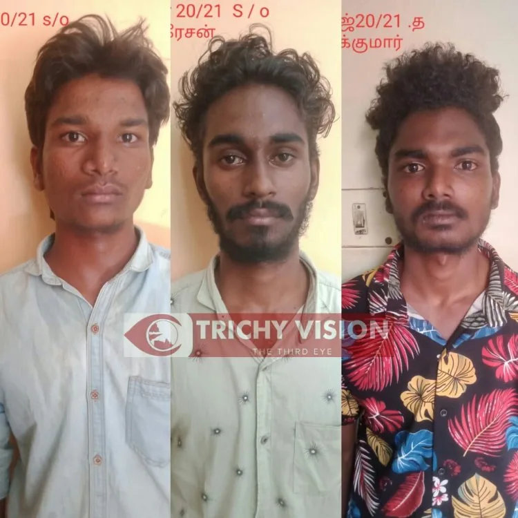 திருச்சி மாவட்டம் சமயபுரம் கடைவீதியில் கடந்த ஜூன் மாதம் இரவில் லாரியை நிறுத்தி விட்டு உணவு அருந்த சென்ற போது லாரி டிரைவர், கிளீனரை மிரட்டி செல்போன், பணம் பறித்த வழக்கில் இரண்டு மாதத்திற்கு பின் 3 பேர் கைது செய்யப்பட்டனர்.