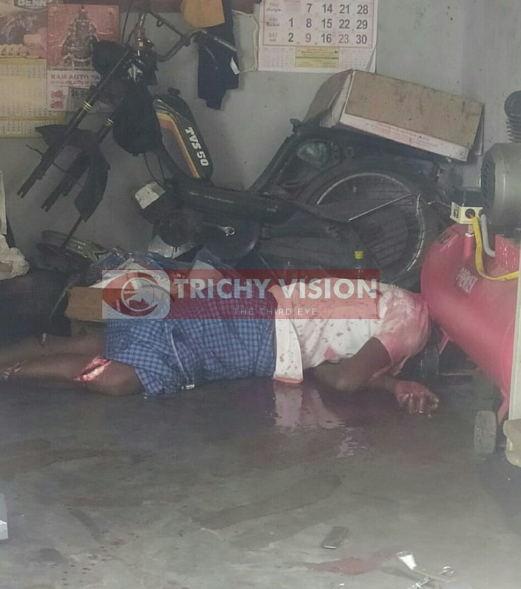 திருச்சி குழுமணி மெயின் ரோட்டில் சுப்புராம்பட்டி பகுதியை சேர்ந்த ரவிசந்திரன் பட்டப்பகலில் நடுரோட்டில் வெட்டிக் கொலை. இவர் மீன்பிடி தொழில் செய்து வருகிறார். இரண்டு சக்கர வாகனத்தை சரி செய்வதற்காக அங்கு உள்ள கடைக்கு வந்துள்ளார். அப்போது கடையில் வேலை பார்க்கும் நபர் ஒருவர் வந்துள்ளார்.