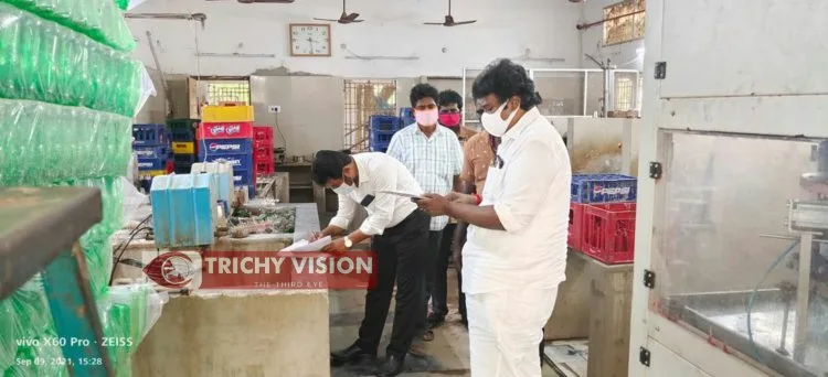 திருச்சி பீமநகரில் தனியார் குளிர்பான நிறுவனம் தொடர்பாக அப்பகுதி மக்களிடம் இருந்து வந்த புகாரின் அடிப்படையில் அந்நிறுவனத்தில் உணவு பாதுகாப்பு துறை மாவட்ட நியமன அலுவலர் டாக்டர் ரமேஷ்பாபு தலைமையிலான குழுவினர் நேற்று திடீர் ஆய்வு நடத்தினர்.