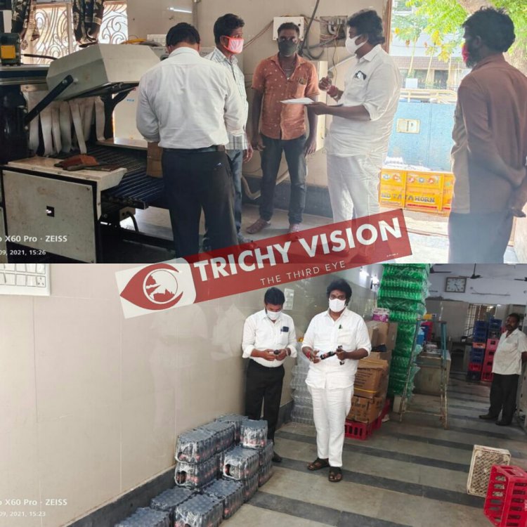 திருச்சி பீமநகரில் தனியார் குளிர்பான நிறுவனம் தொடர்பாக அப்பகுதி மக்களிடம் இருந்து வந்த புகாரின் அடிப்படையில் அந்நிறுவனத்தில் உணவு பாதுகாப்பு துறை மாவட்ட நியமன அலுவலர் டாக்டர் ரமேஷ்பாபு தலைமையிலான குழுவினர் நேற்று திடீர் ஆய்வு நடத்தினர்.