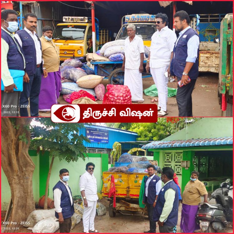 திருச்சி காந்தி மார்க்கெட் வெங்காயம் மண்டி பகுதிகளில் அழகி போன வெங்காயங்கள், பூண்டு விற்பனை செய்வதாக உணவு பாதுகாப்பு துறை அதிகாரிகளுக்கு தகவல் கிடைத்துள்ளது. தகவலின் அடிப்படையில் திருச்சி மாவட்ட உணவு பாதுகாப்பு துறை அதிகாரி டாக்டர். ரமேஷ் பாபு தலைமையிலான அதிகாரிகள் நேற்று திடீரென காந்தி மார்க்கெட் வெங்காயம் மண்டி பகுதிகளில் ஆய்வில் ஈடுபட்டனர்.