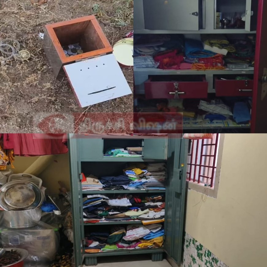 இதனை நோட்டமிட்ட மர்ம நபர்கள் வீட்டின் பின் கதவின் பூட்டை உடைத்து வீட்டிற்குள் புகுந்து பீரோவில் இருந்த 30 பவுன் நகை மற்றும் 20,000 ரூபாய் பணம் மற்றும் உண்டியல்கள் என அனைத்தையும் திருடிவிட்டு வீட்டின் சமையல் அறையில் இருந்த உணவுகளை எடுத்துக்கொண்டு வீட்டின் அருகிலேயே கொண்டு சென்று நிதானமாக சாப்பிட்டுவிட்டு தப்பி சென்றுள்ளனர் .