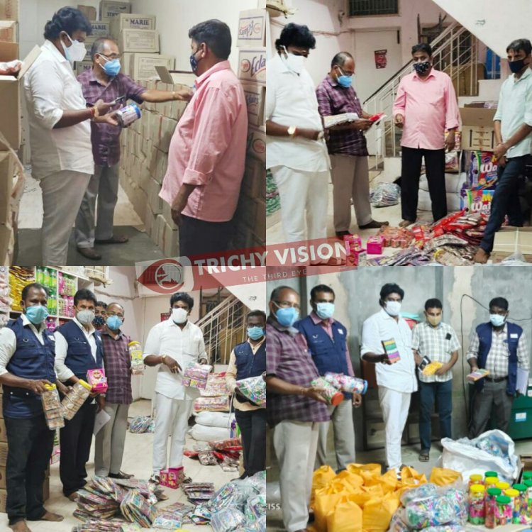 பொது மக்கள் புகாரையடுத்து உணவு பாதுகாப்பு துறை மாவட்ட நியமன அலுவலர் டாக்டர் R.ரமேஷ்பாபு தலைமையில் உணவு பாதுகாப்பு அலுவலர்கள் கொண்ட குழு திருச்சி பெரிய கம்மாள தெருவில் உள்ள 2 கடைகள் ஆய்வு செய்தனர்.
