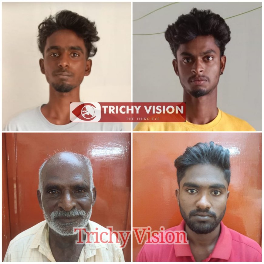 அண்ணாவி நகரை சேர்ந்த வினோத்குமார் (20), காந்தி நகரை சேர்ந்த சிவனேசன் (57) ஆகிய 4 பேரும் கஞ்சாவை வைத்து விற்பனை செய்து கொண்டிருந்தனர்.