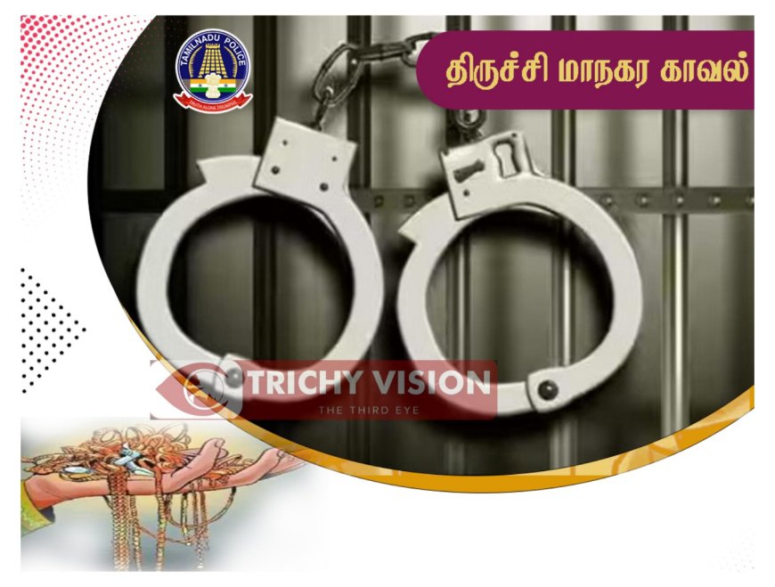 திருச்சி மாநகர காவல் ஆணையர் ந.காமினி, மேலான உத்தரவின்படி டிராவல்ஸ் பேக்கில் வைத்திருந்த நகை பையை திருடிய எதிரிகளை கைது செய்ய காவல் ஆய்வாளர் தலைமையில் தனிப்படை அமைக்கப்பட்டு விசாரணை மேற்கொள்ளப்பட்டது. பேருந்தில் இருந்த சிசிடிவி காட்சிகளையும், சம்பவ நடைபெற்ற இடத்தின் வழிநெடுகளிலும் உள்ள சிசிடிவி காட்சிகளையும் ஆய்வு செய்தும் விசாரணை செய்தும் இந்த திருட்டு குற்றத்தை ஸ்ரீரங்கம் அழகிரிபுரத்தை சேர்ந்த 1. தென்னூரைச்சேர்ந்த அப்துல் அஜீஸ் (எ) வெள்ளை ராஜா (42), த.பெ. முகமது அலி,  2. தென்னூர் காஜாதோப்பைச்சேர்ந்த சூசைராஜ் (34), த.பெ.இன்னாசி,