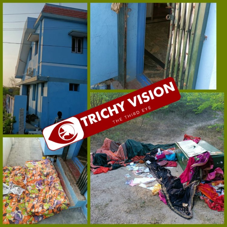 நேற்றிரவு கணவன் மனைவி மற்றும் பிள்ளைகள் அனைவரும் மாடிவீட்டில் உள்ளே AC அறையில் படுத்து தூங்கி கொண்டிருந்த பொழுது, பின் கதவை உடைத்து உள்ளே நுழைந்த திருடர்கள் மணிகண்டன் உறங்கிக்கொண்டிருந்த அறையை பூட்டிவிட்டு ,வீட்டின் மற்றொரு அறையில் இருந்த பீரோவை வீட்டிற்கு வெளியே 70 மீட்டர் தொலைவில் தூக்கி சென்று கருவேலம் காட்டில் பீரோவை உடைத்து அதில் இருந்த நெக்லஸ், தோடு உள்பட 9 பவுன் சுமார் 4 லட்சம் மதிப்புள்ள தங்க நகைகளையும், திருடி விட்டார்கள்.