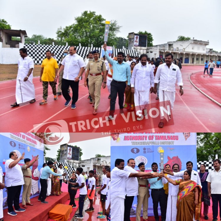 அதனை விளையாட்டு வீரர்கள், மாணவர்கள், காவலர்கள் உள்ளடங்கிய ஜோதி ஓட்டக்  குழுவினரிடம் வழங்கி, திருச்சிராப்பள்ளியில் 44ஆவது  செஸ் ஒலிம்பியாட் விளையாட்டு ஜோதி ஓட்டத்தினை  தொடங்கி வைத்தார் .