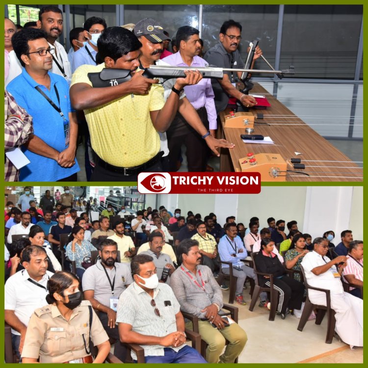 தமிழகம் முழுவதும் துப்பாக்கி சுடுதலில் பயிற்சி பெற்ற சுமார் 1300 போட்டியாளர்கள் கலந்து கொள்ளும் போட்டி முதல் முறையாக திருச்சி மாநகர காவல்துறை சார்பில் ரைபிள் கிளப்பில் நடத்தப்படுகிறது. இந்த துவக்க விழா நிகழ்ச்சியில் திருச்சி மாவட்ட ஆட்சியர் பிரதீப்குமார், திருச்சி மாநகர காவல் ஆணையர் கார்த்திகேயன், மத்திய மண்டல காவல்துறை தலைவர் சந்தோஷ்குமார் கலந்து கொண்டனர்.