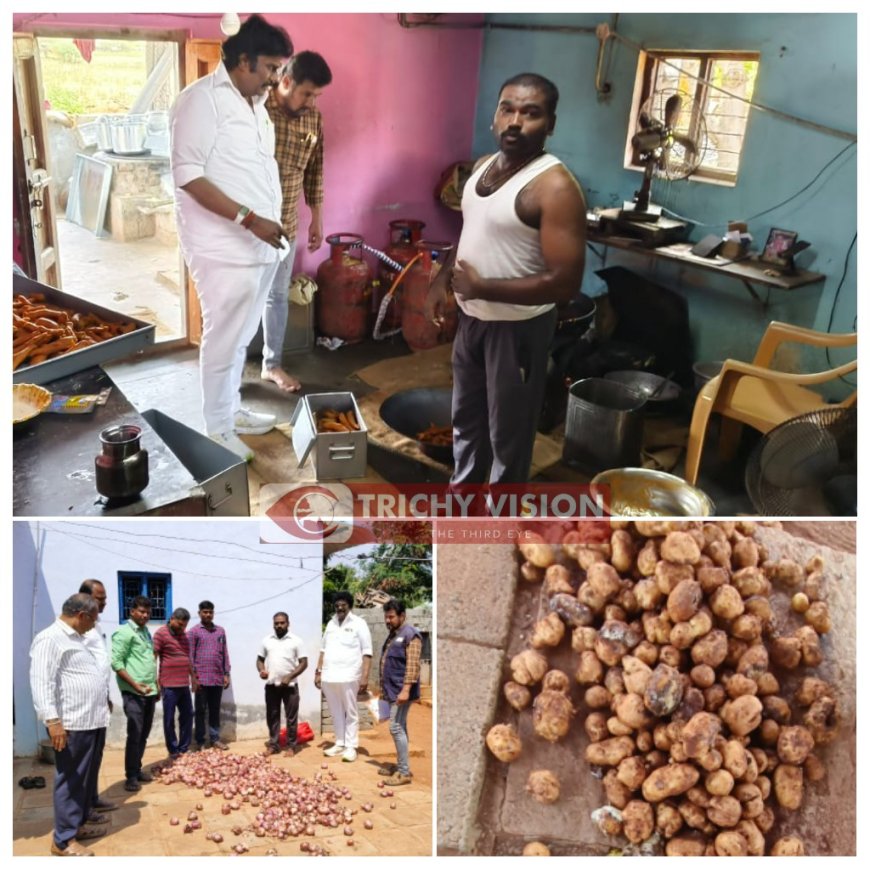 இந்த ஆய்வின்போது 1.215 கிலோகிராம் பறிமுதல் செய்யப்பட்டு அபராதம் விதிக்கப்பட்டு மேல்நடவடிக்கைக்காக முசிறி காவல் நிலையத்தில் தகவல் தெரிவிக்கப்பட்டுள்ளது. மேலும் செந்தில்குமார் த/பெ வேலாயுதம், செந்தில் ஸ்நாக்ஸ், அண்ணா நெசவாளர் காலனி, என்ற நபர் முசிறி நகராட்சி பகுதிகளுக்கு சமோசா மொத்த விற்பனை செய்வதற்கு அழுகிய காய்கறிகளை கொண்டு சமோசா செய்து விற்பனை செய்து வந்தது தெரிய வந்தது.