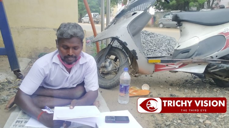 திருச்சி அரியாவூர் பகுதியை சேர்ந்தவர் மாற்றுத்திறனாளி சிவகுமார்(35). இவர் அக்கவுண்டன்ட், டேலி படித்துள்ளார். மாவட்ட ஆட்சியர் அலுவலகத்தில் கடந்த ஐந்து வருடமாக மனு எழுதும் வேலை செய்து வருகிறார். இவருடைய குடும்பத்தில் உள்ள தாய் அஞ்சலை (58), பாட்டி செங்கமலம் (85) இருவரையும் இதில் வரும் வருமானத்தை கொண்டு பார்த்துக் கொள்ள வேண்டும். ஆனால் தற்போது கொரோனா காரணமாக மாவட்ட ஆட்சியர் அலுவலகத்தில் மனு எழுத அதிகளவில் மக்கள் வராததாலும், ஆன்லைன் மூலம் மனு எழுதும் முறை வந்துள்ளதால் ஒரு நாளைக்கு 400 ரூபாய் வரை கிடைத்த தங்களுக்கு, தற்போது 100 ரூபாய் கூட கிடைப்பதில்லை என்கிறார் மாற்றுத்திறனாளி சிவகுமார்.