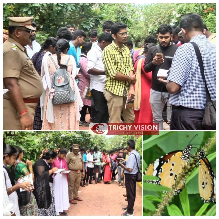 அந்த வகையில் தமிழ்நாடு வனத்துறையுடன் இணைந்து மதுரை அமெரிக்கன் கல்லூரி பேராசிரியர் ராஜேஷ் மேற்பார்வையில் வனச்சரக அலுவலர் சுப்பிரமணியன் தலைமையில் திருச்சியிலுள்ள 4 கல்லூரிகளைச் சேர்ந்த 180க்கும் மேற்பட்ட மாணவ, மாணவிகள் வருகை தந்து வண்ணத்துப்பூச்சிகளை கணக்கெடுக்கும் பணியில் ஈடுபட்டனர். வண்ணத்துப்பூச்சிகளின் அழகையும் கண்டு ரசித்தவாறு தாவரங்களின் வகைகள் மற்றும் வண்ணத்துப்பூச்சிகள் வகைகளையும் அவர்கள் கணக்கெடுத்தனர்.