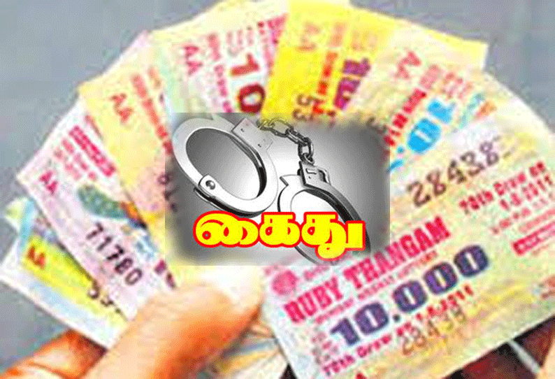 திருச்சி மண்ணச்சநல்லூர் பகுதிகளில் சட்ட விரோதமாக கேரளா லாட்டரி சீட்டுகளை விற்பனை செய்த பூனாம் பாளையம் கிராமத்தைச் சேர்ந்த வடமலை, ராமன், பாஸ்கர், திருவேங்கடம், அய்யம்பாளையம் கிராமத்தைச் சேர்ந்த சிவசங்கரன்,மண்ணச்சநல்லூர்ரைச்ச் சேர்ந்த கண்ணன் ஆகிய 6 பேரை தனிப்படை போலீசார் கைது செய்து மண்ணச்சநல்லூர் காவல்நிலையத்தில் ஒப்படைத்தனர்.