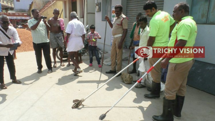 திருச்சி மாவட்டம் மணப்பாறை பூங்கா ரோட்டில் வசித்து வருபவர் ஷேக் தாவுத் மனைவி ஜஹீராபானு. இவர்களது வீட்டின் ஆல்பெட்டாஸ் மேற்கூரையில் நீள பாம்பு ஒன்று இருப்பதை கண்டு அதிர்ச்சியடைந்தார்.