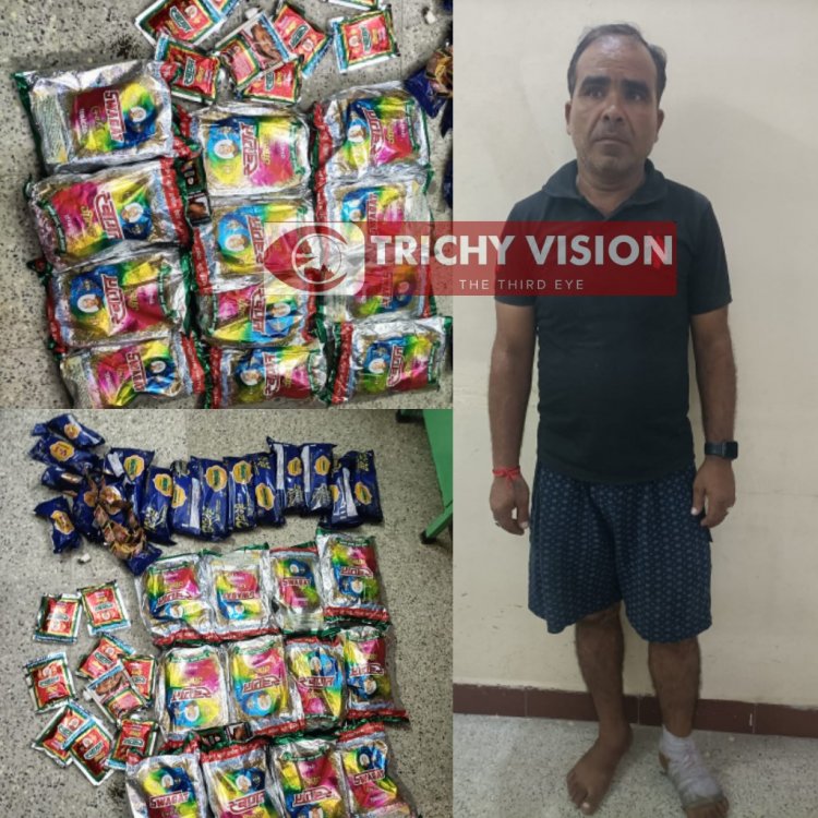 திருச்சி சமயபுரம் பகுதியில் கட்டிட கூலி வேலை செய்து வரும் வட மாநிலத்தைச் சேர்ந்தவரிடம் தடை செய்யப்பட்ட 6 கிலோ குட்கா பாக்கெட்களை சமயபுரம் போலீஸார் பறிமுதல் செய்து, அவரை கைது செய்தனர்.